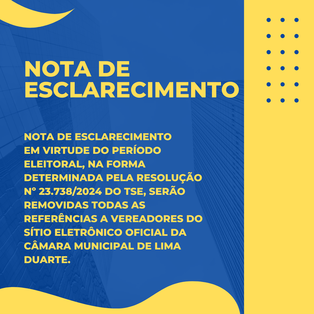 NOTADEESCLARECIMENTOEmvirtudedoperodoeleitoralnaformadeterminadapelaResoluon23.7382024doTSEseroremovidastodasasrefernciasavereadoresdostioeletrnicooficialdaC.png — Câmara Municipal de Lima Duarte