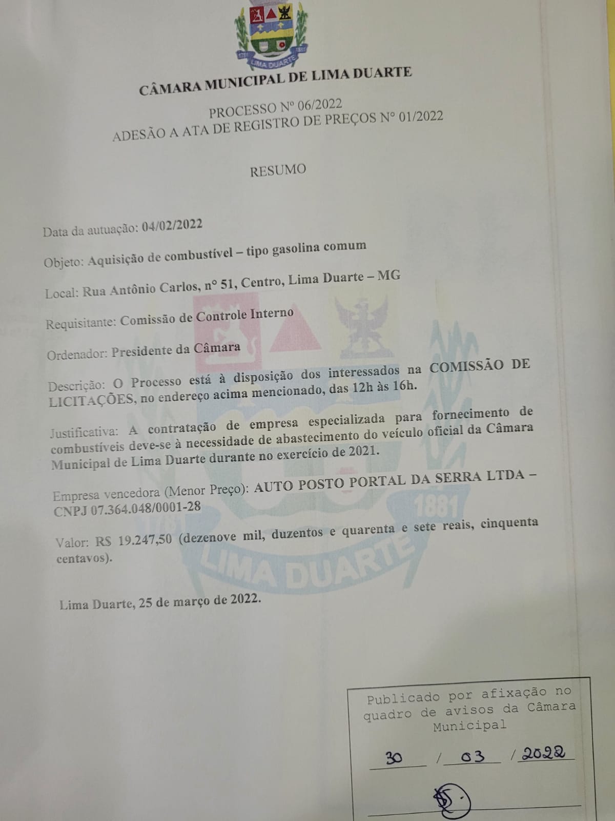 RESUMO DE LICITAÇÃO